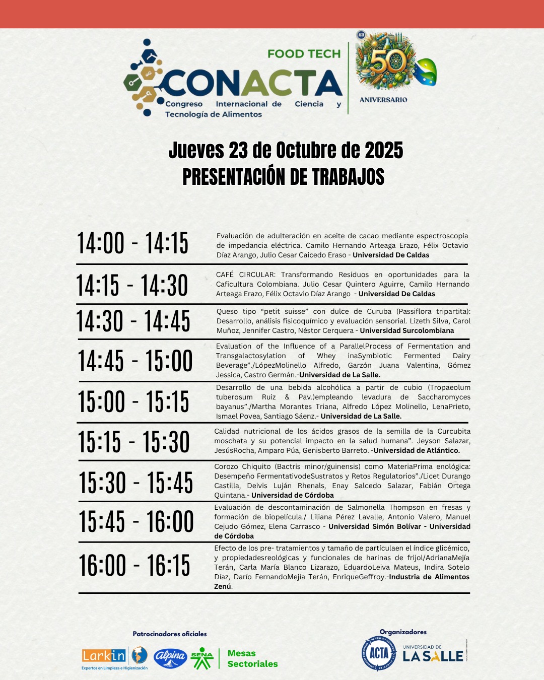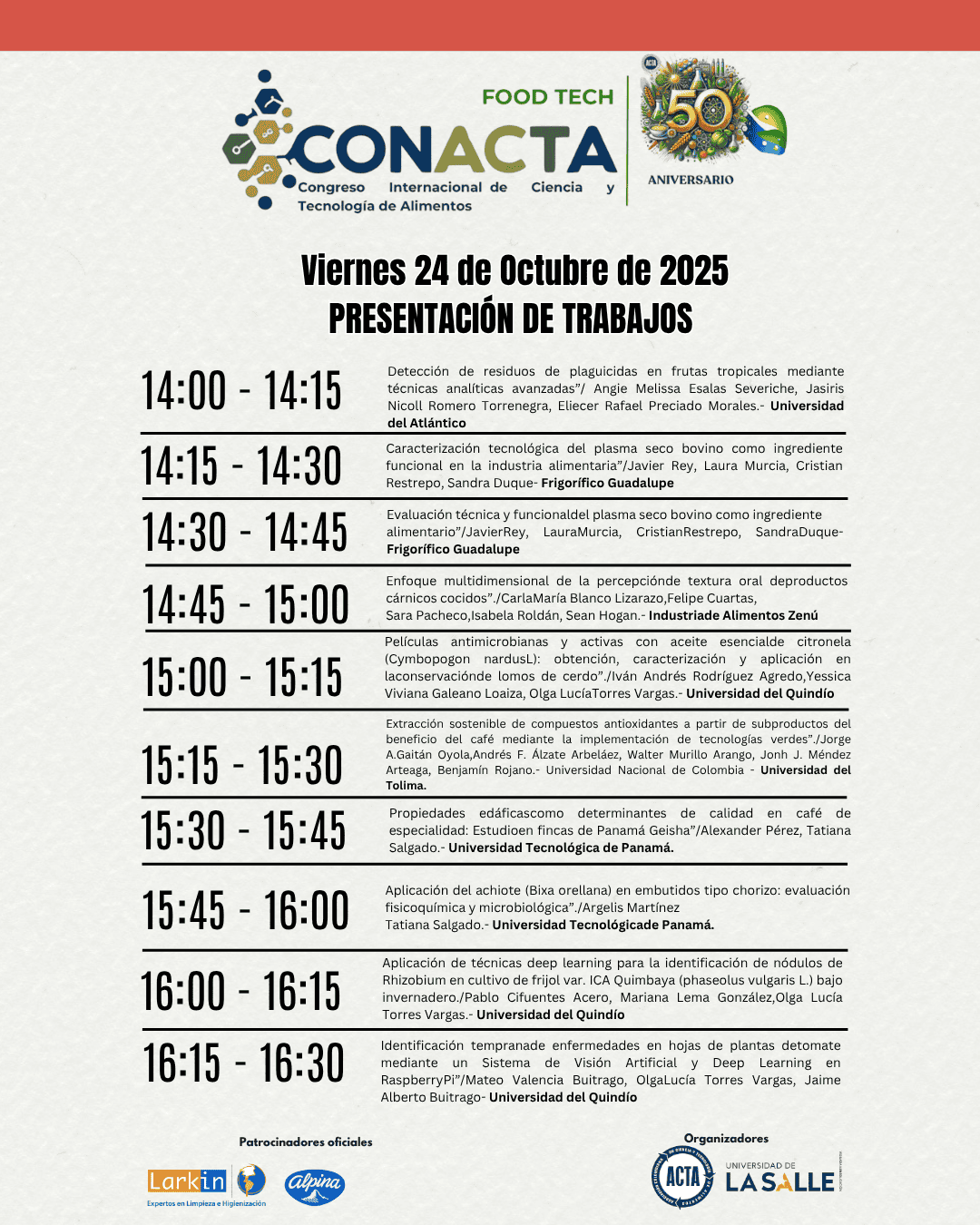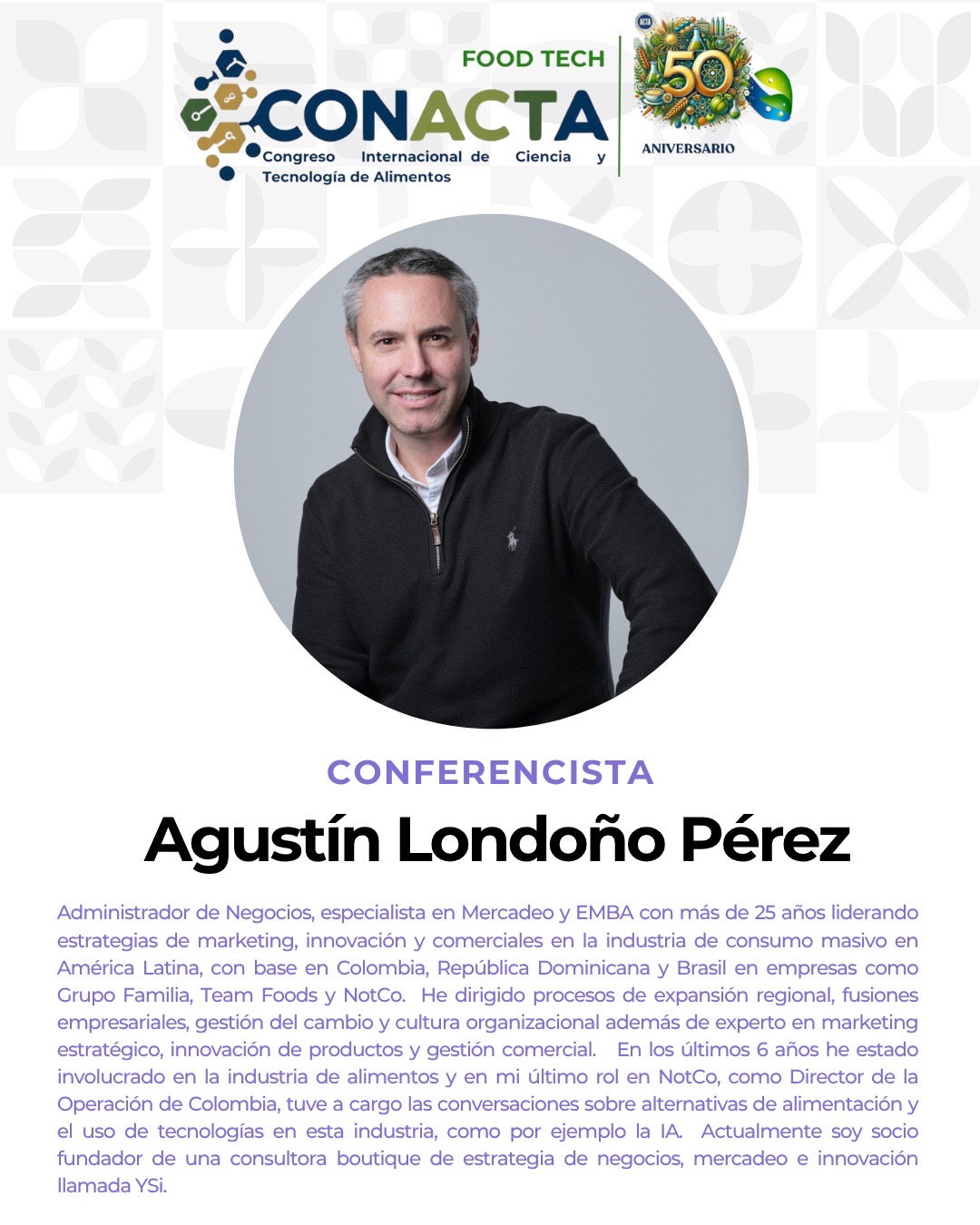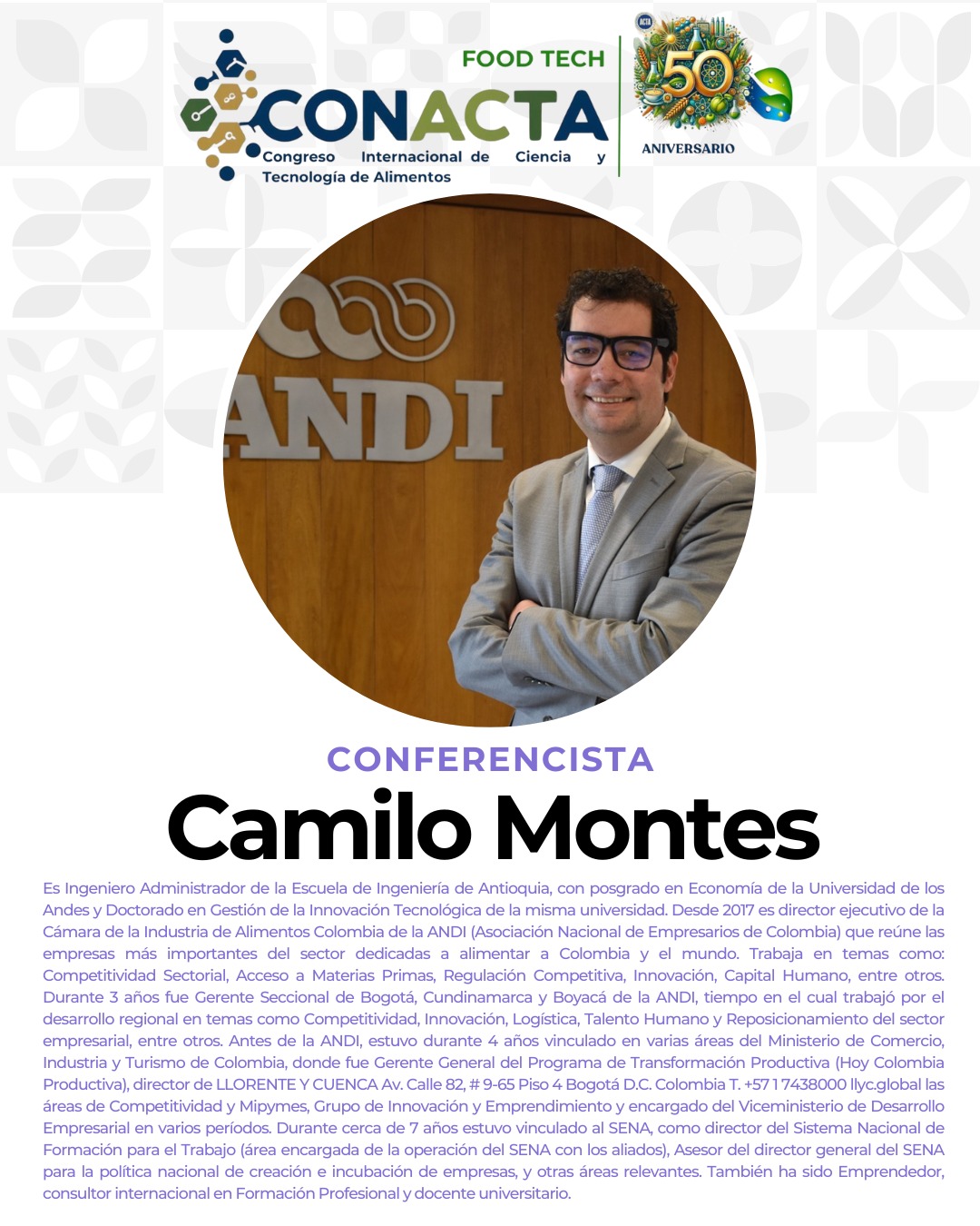 Bienvenidos al Congreso CONACTA 2025 – FOOD TECH un espacio de encuentro y reflexión que celebra medio siglo de aportes por parte de ACTA que esta cumpliendo 50 años de labor. Este evento tiene como propósito explorar, discutir e impulsar la innovación en la industria alimentaria, promoviendo la integración de tecnologías emergentes y fomentando la colaboración entre profesionales, investigadores y emprendedores.